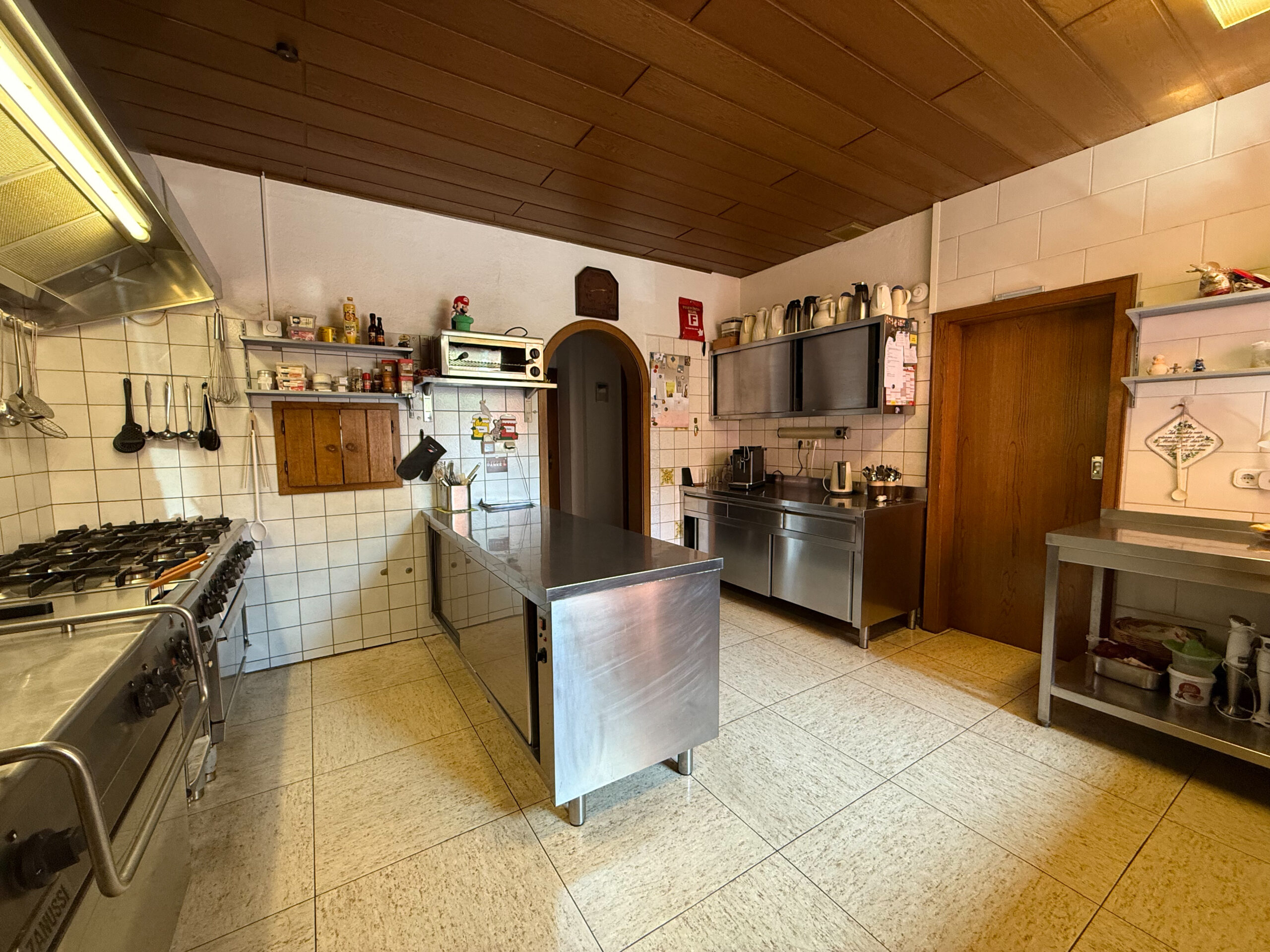 Im Erdgeschoss befinden sich die Gasträume mit einem einladenden Veranstaltungssaal, einem gemütlichen Kaminzimmer, großzügiger Küche, separaten Toilettenanlagen sowie einem Biergarten – ideal für Events, Feiern oder neue Konzepte im Bereich Gastronomie.